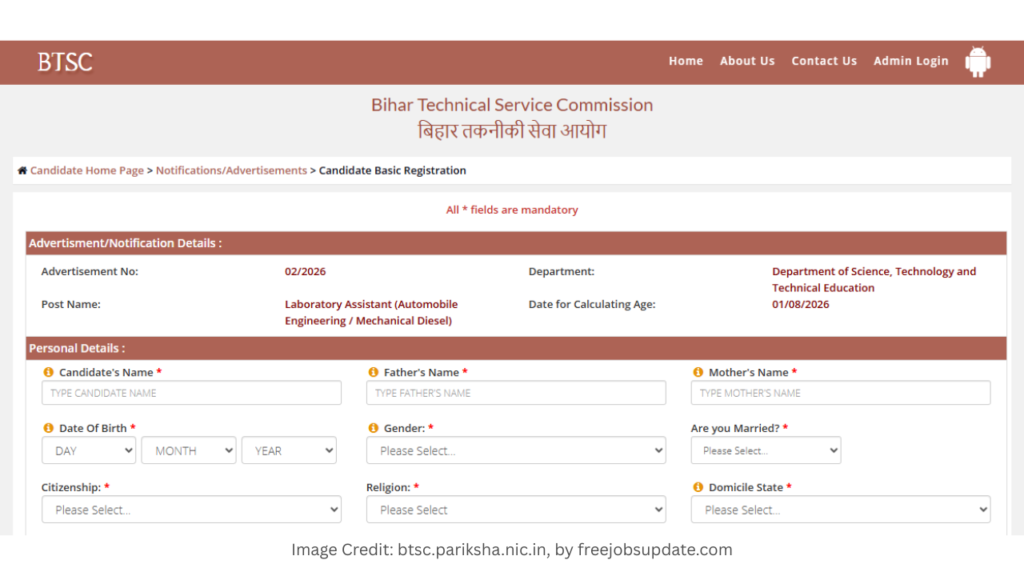 Bihar BTSC Laboratory Assistant Recruitment 2026 Online Apply