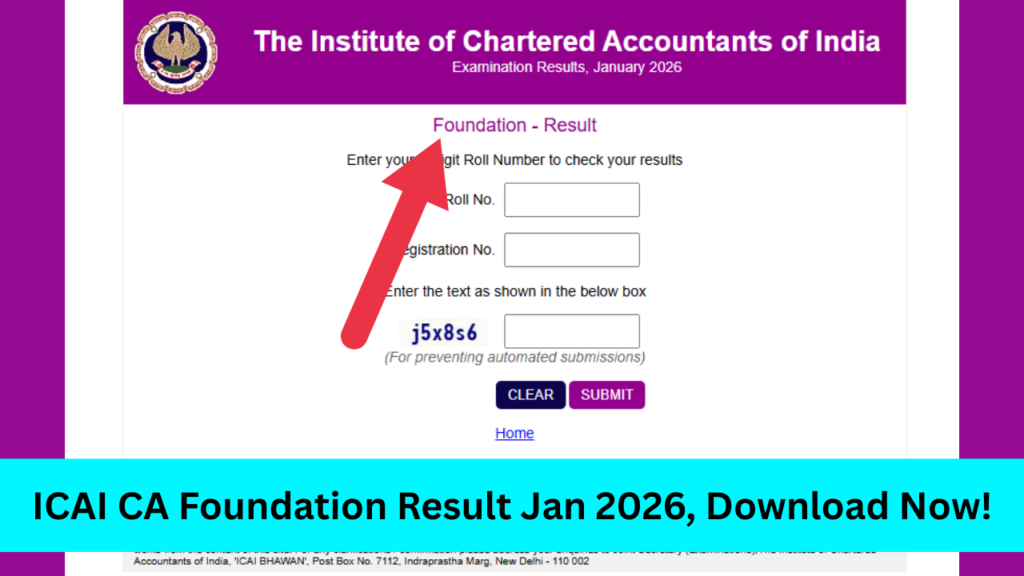 ICAI CA Foundation Result Jan 2026, The Institute of Chartered Accountants of India (ICAI) has officially declared the CA January 2026 Result for Intermediate and Foundation courses on March 8, 2026. Candidates who appeared in the examination can now check their results online through the official websites icai.nic.in and icai.org.