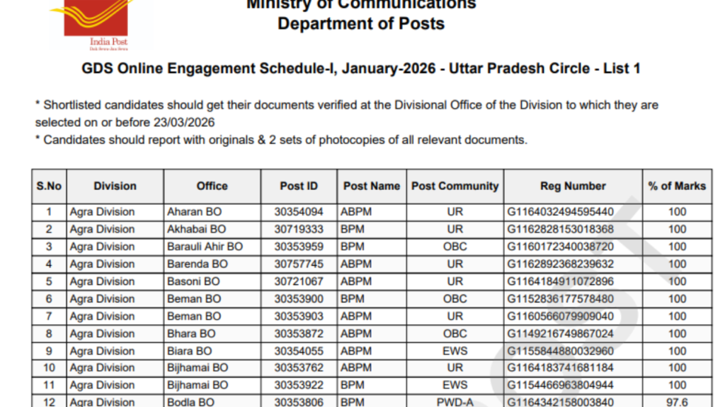 India Post GDS Result 2026 has officially released the India Post GDS Result 2026 for candidates who applied for the Gramin Dak Sevak (GDS) recruitment drive. Applicants can now check the state-wise merit list PDF through the official portal of the Department of Posts. According to updates shared on freejobsupdate.com, the result has been published in PDF format for each postal circle, making it easier for candidates to check their status quickly.