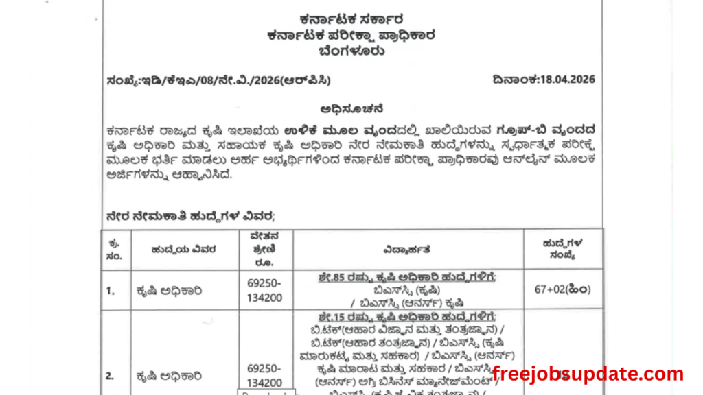 KEA AO AAO Recruitment 2026, The Karnataka Examinations Authority (KEA) has officially released the KEA AO AAO Recruitment 2026 Notification, offering a great opportunity for candidates in the agriculture field. A total of 890 vacancies (872 + 18 HK) have been announced for the posts of Agriculture Officer (AO) and Assistant Agriculture Officer (AAO).