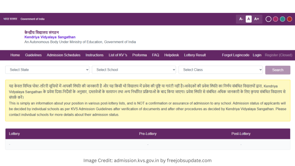 KVS Admission Lottery ResultsClick Here