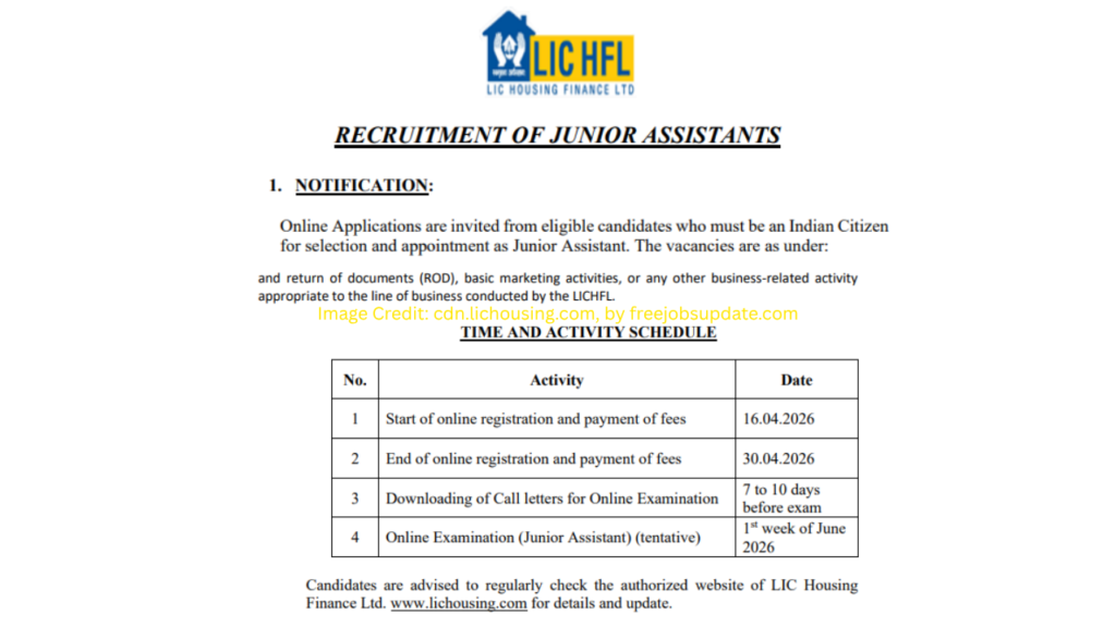 LIC HFL Junior Assistant Recruitment 2026 Dates