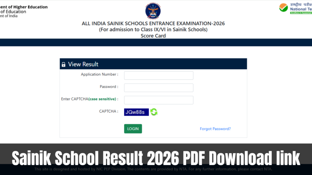 NTA Sainik School Result 2026, has been officially declared by the National Testing Agency (NTA) on 27 February 2026. Candidates who appeared for the entrance exam for Class 6 and Class 9 admissions can now download their scorecards from the official website.
