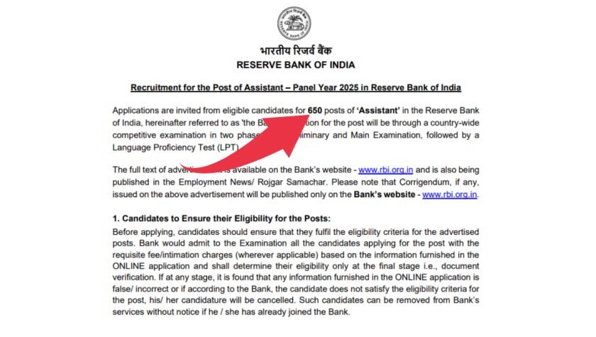 Important information: The Reserve Bank of India (RBI) has officially released the RBI Assistant Recruitment 2025 (Panel Year 2025) notification for RBI Assistant Notification 2026, 650 posts across India. This is a golden opportunity for graduates looking to work with India’s central bank. Interested candidates can apply online through the official website www.rbi.org.in. According to the official notification, the selection process will be conducted in three stages – Preliminary Exam, Main Exam, and Language Proficiency Test (LPT). and Regular updates, please follow freejobsupdate.com.