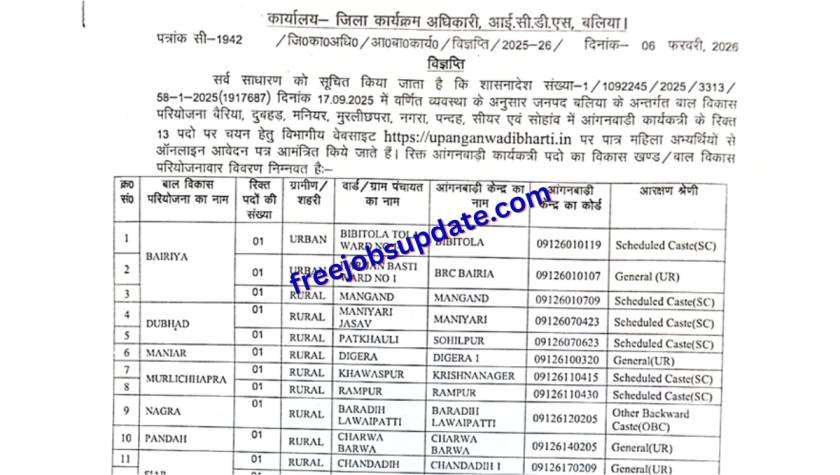 If you are looking for a stable government job in Uttar Pradesh, the UP Anganwadi Worker Recruitment 2026 brings a golden opportunity. The UP Anganwadi Department has officially released a notification for 13 Anganwadi Worker vacancies across multiple project areas. The online application process is live from 07 February 2026 and eligible candidates can apply till 27 February 2026 through the official website. This recruitment is ideal for candidates who have passed 10th, Graduation, or Post Graduation and want to work in the Women & Child Development sector. For fast and verified updates, candidates are advised to regularly check freejobsupdate.com, where all major government job alerts are shared in one place.